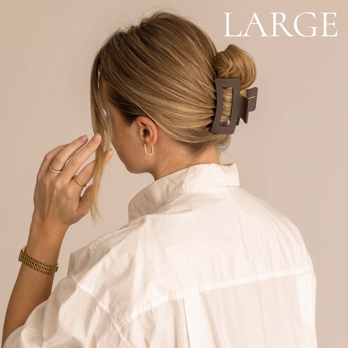 Vår stora chokladbruna hårklämma gjord i tåligt polykarbonat och passar perfekt för dig som är ute efter en stilren heluppsättning men även halvuppsättning för dig med lite tjockare hår. Klämman är speciellt framtagen för att passa de flesta hårtyper och den matta ytan gör att den får extra bra grepp i håret, även för dig med glattare hår.