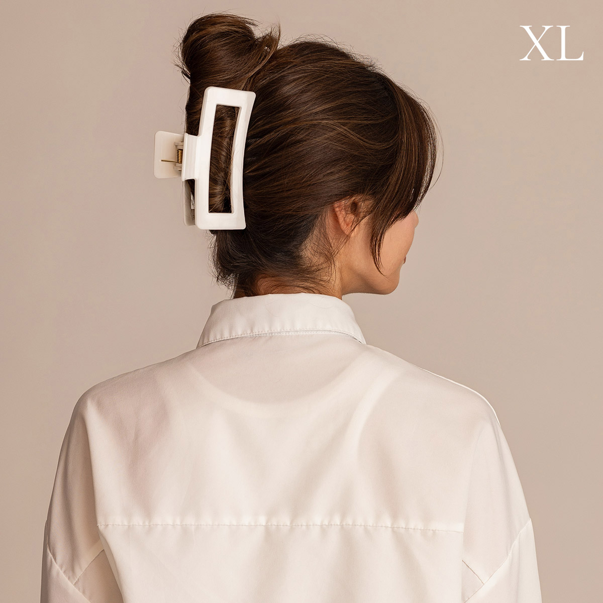 Hårklämman för dig med extra långt och extra tjockt hår! Med hela 13 cm, extra piggar på insidan och en stark fjäder så håller den håret på plats. Vår största hårklämma blir en stilren detalj i håret.