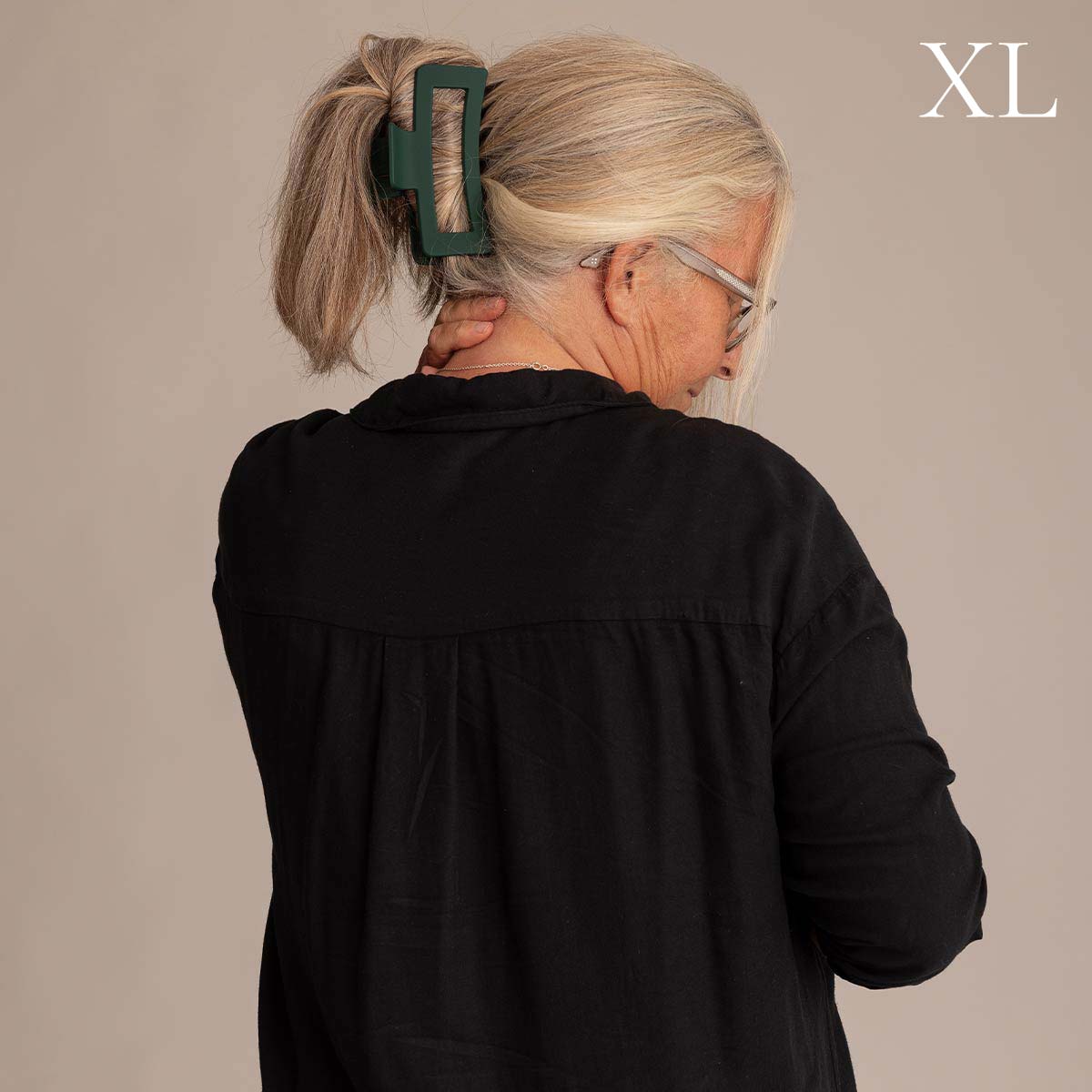 Hårklämman för dig med extra långt och extra tjockt hår! Med hela 13 cm, extra piggar på insidan och en stark fjäder så håller den håret på plats. Vår mörkgröna nyans matt smaragd blir en stilren detalj i håret.